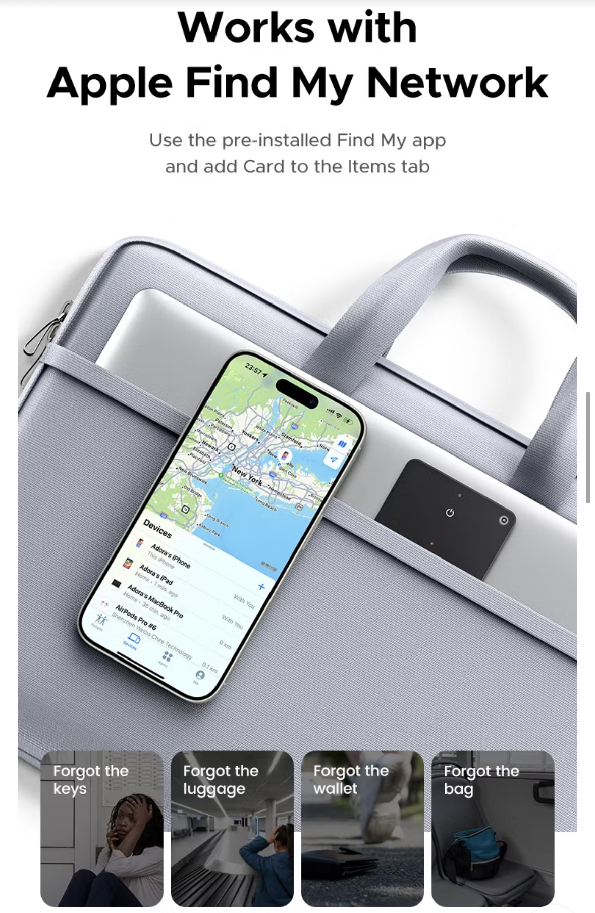 อุปกรณ์รองรับระบบ Find My ซึ่งขึ้นชื่อเรื่องความแม่นยำ ใช้เครือข่าย Apple Devices จำนวนมากในการช่วยกระจายสัญญาณ ทำให้โอกาสในการหา “จุดล่าสุด” ที่ทำของหายมีสูงมาก