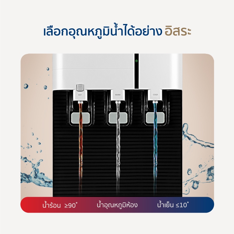 น้ำเย็นและน้ำอุณหภูมิห้อง: กดปุ่มใช้งานได้ทันที