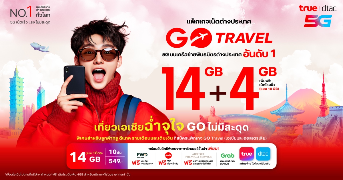 ตอนนี้โรมมิ่ง GO Travel จากทรู ดีแทค จัดให้แบบจบ ๆ ในแพ็กเดียว ได้เน็ตโรมมิ่งรวม 18GB ใช้ได้ 10 วัน แค่ 549 บาท แถมยังพ่วงสิทธิ์ฟรีอีกเพียบที่สายเที่ยวต้องกรี๊ด