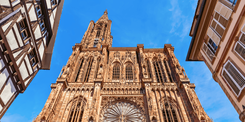 หนึ่งในแลนด์มาร์กที่ทำให้หลายคนตกหลุมรักเมืองนี้คือ มหาวิหารสไตล์โกธิคสุดยิ่งใหญ่ (Cathédrale Notre-Dame de Strasbourg) ที่เคยครองสถิติเป็นอาคารสูงที่สุดในโลกช่วงศตวรรษที่ 15 ด้วยยอดแหลมสูงถึง 142 เมตร