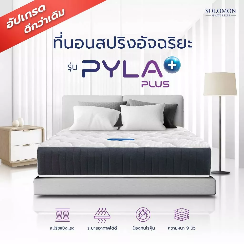 หากกำลังมองหาที่นอนที่ให้ความนุ่มเด้ง รองรับสรีระ และมีราคาคุ้มค่า SOLOMON ถือเป็นหนึ่งในตัวเลือกที่น่าสนใจ โดยเฉพาะรุ่นยอดนิยมอย่าง Pyla Plus ที่ออกแบบด้วยระบบสปริงคุณภาพและวัสดุที่ช่วยเพิ่มความสบายในการนอน