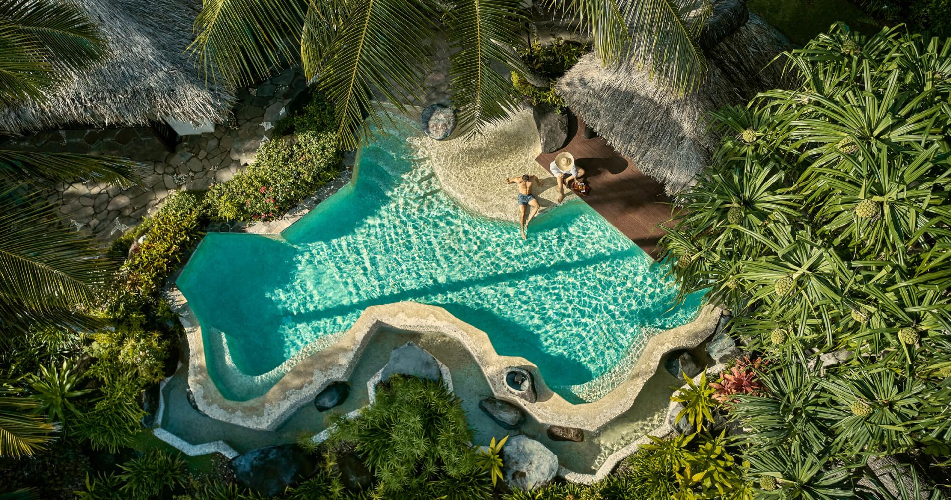 คุณจะได้พักในวิลล่าเหนือน้ำที่ใหญ่ที่สุดแห่งหนึ่งในเฟรนช์โปลินีเซียและแถบแปซิฟิกใต้ มองเห็นน้ำทะเลสีฟ้าครามผ่านพื้นกระจกด้านล่างแบบฟีล “ตื่นมาก็เห็นทะเลใต้เท้า”