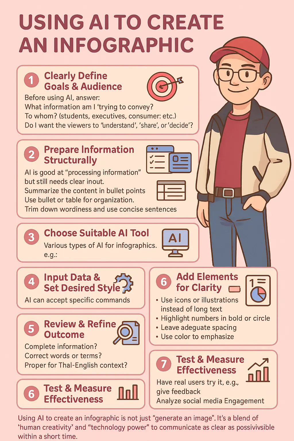 วันนี้มาดูวิธีใช้ AI ให้ช่วยเราทำ Infographic แบบเป็นขั้นเป็นตอน ลดเวลาทำงาน แต่ยังได้งานที่ทั้งสวยและสื่อสารชัดเจน