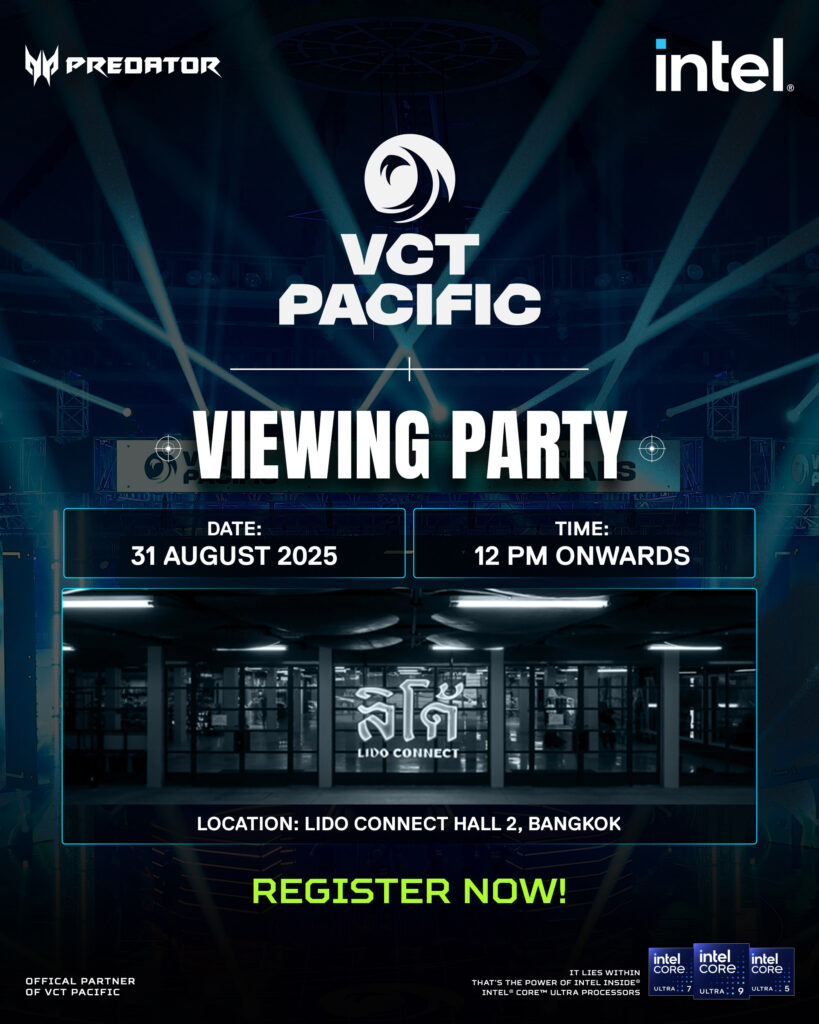 สำหรับคนที่อาจยังไม่ได้บินไปโตเกียว แต่ไม่อยากพลาดบรรยากาศแมตช์ไฟนอลสุดเดือด Predator และ Intel จัดให้กับงาน “Predator x Intel VCT Pacific 2025 Viewing Party” ที่ใจกลางกรุงเทพฯ