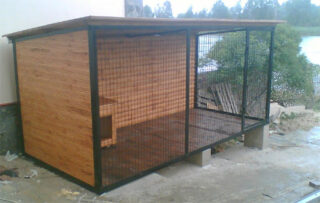 วางโครงพื้น – วางคานไม้บนฐานราก ยึดให้แน่น แล้วปูพื้นด้วยกระดานไม้ หากกรงไม่มีหลังคา แนะนำให้ทำพื้นซีเมนต์เพื่อกันความชื้นและทำความสะอาดง่าย