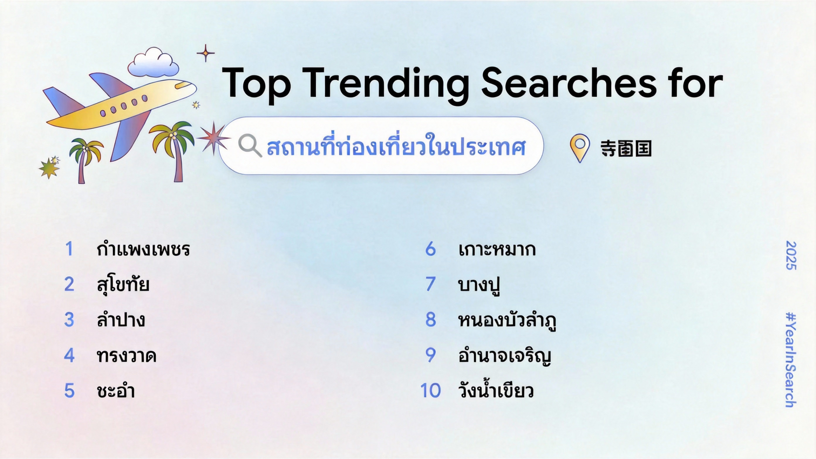 ไม่ใช่แค่เที่ยวในไทยที่มาแรง หมวดสถานที่ท่องเที่ยวต่างประเทศก็มีคำค้นหาติดเทรนด์เพียบ