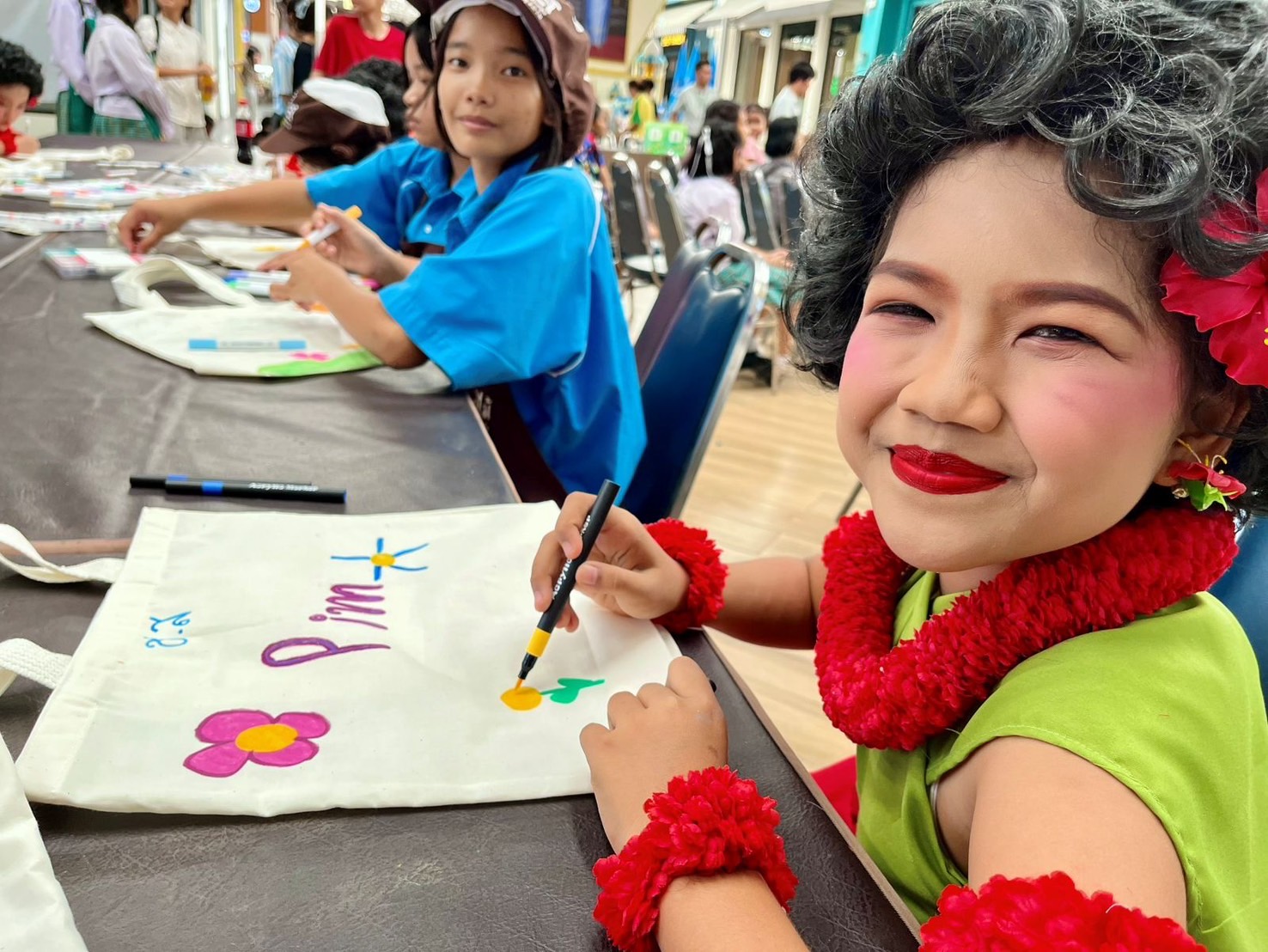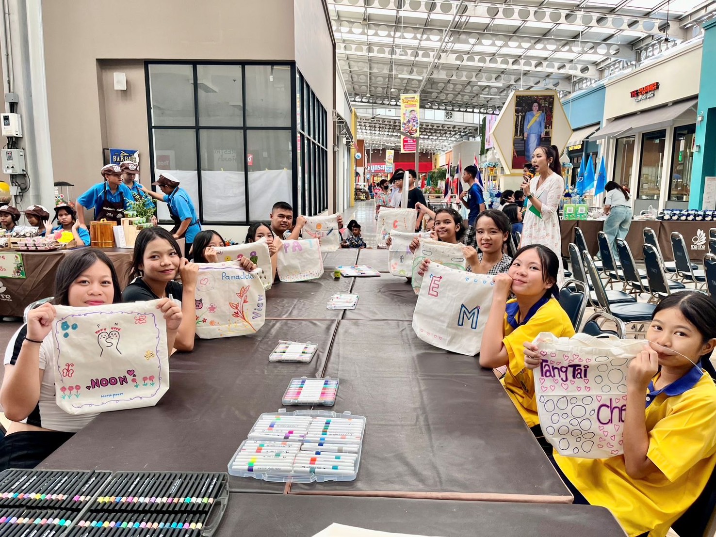 ในเวิร์กชอปนี้ เด็ก ๆ ได้ร่วมระบายสีบนถุงผ้ารักษ์โลกไปพร้อมกับเรียนรู้ว่า