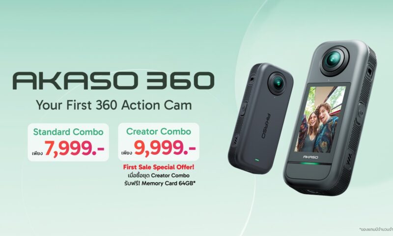 AKASO 360 ถือว่าเปิดราคามาโหดมากในเชิงความคุ้มค่า เพราะทำราคาเริ่มต้นเพียง 7,999 บาท ซึ่งต่ำกว่าคู่แข่งหลายแบรนด์ที่มักเริ่มราว ๆ 18,000 บาทขึ้นไปในตลาดกล้อง 360°