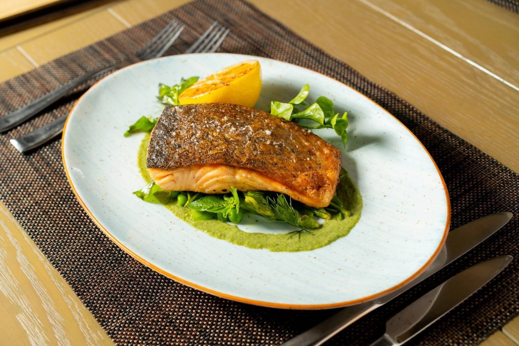 ที่ภูเก็ต The Naka Island, a Luxury Collection Resort & Spa เสิร์ฟเมนู Olive Oil Salmon แซลมอนปรุงในน้ำมันมะกอกอย่างดี ที่ห้องอาหาร Rum Chapel พร้อมบรรยากาศริมทะเลสุดโรแมนติก ในราคาเพียง 990 บาทสุทธิ