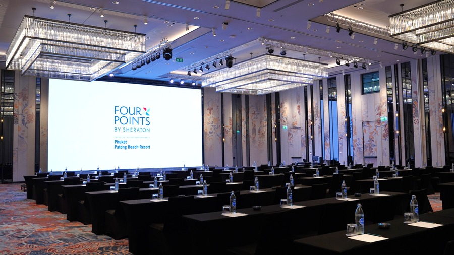 รีสอร์ตริมชายหาดยอดฮิตอย่างโรงแรม โฟร์พอยท์ส บาย เชอราตัน ภูเก็ต ป่าตอง บีช รีสอร์ต กำลังยกระดับมาตรฐานงานประชุมและอีเวนต์ในภูเก็ตไปอีกขั้น ด้วยการติดตั้ง จอ LED ขนาดใหญ่ 45 ตารางเมตร ภายในห้องประชุม อัครา แกรนด์ บอลรูม ที่มาพร้อมวิวหาดป่าตองแบบเต็มตา
