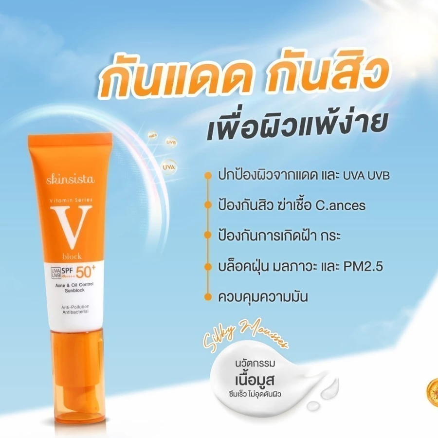 จากข้อมูลที่มี Skinsista ที่ถูกพูดถึงคือ Skinsista Ultra Block Hybrid Sunscreen SPF50+ PA++++ โดยมีคุณสมบัติสำคัญดังนี้