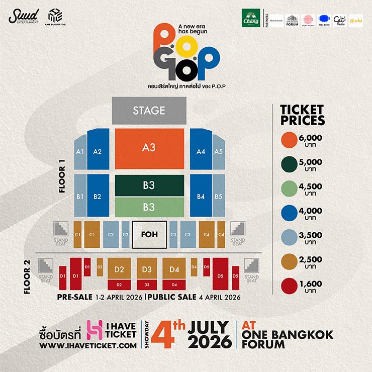 P.O.P GO Concert จะจัดขึ้นในวันที่ 4 กรกฎาคม ณ One Bangkok Forum