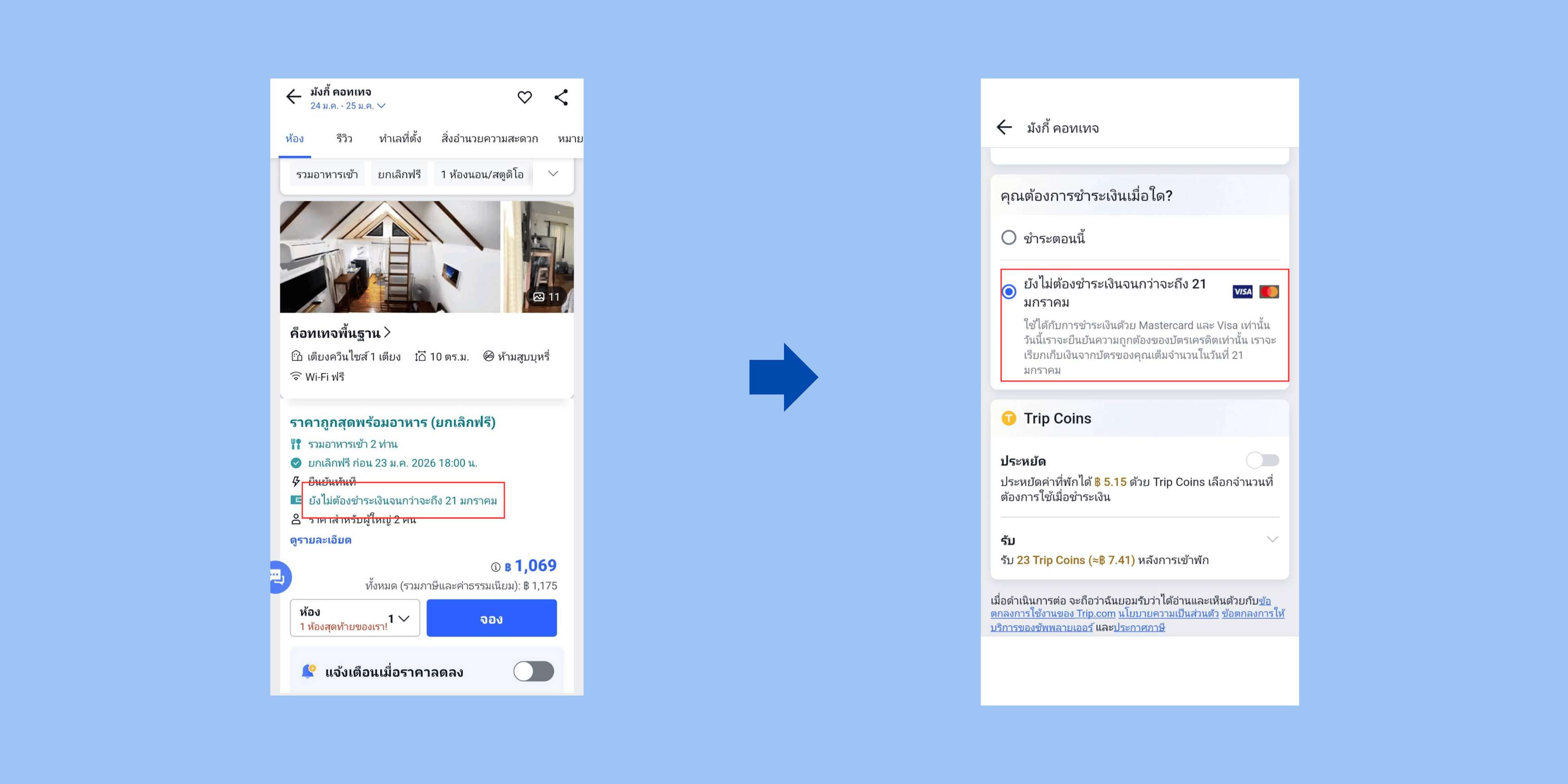 ตรงนี้แหละที่ฟีเจอร์ ชำระเงินภายหลัง (Pay Later) บน Trip.com เข้ามาเป็นตัวช่วยให้สายเที่ยวไทยจองโรงแรมได้อย่างสบายใจ ล็อกราคาดีไว้ก่อน แล้วค่อยจ่ายตามกำหนดทีหลัง ไม่ต้องเร่งรีบ ไม่ต้องเครียดเรื่องเงินจม