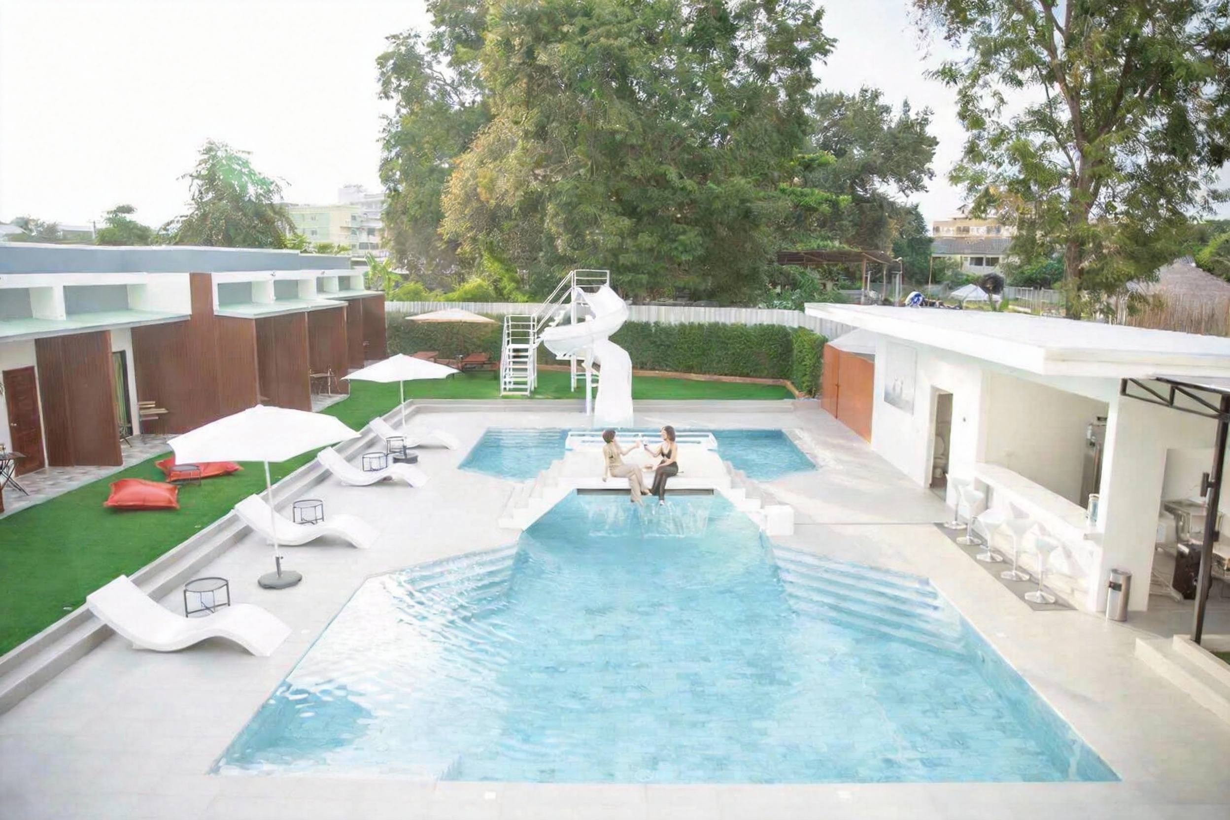 สระว่ายน้ำส่วนตัวพร้อมสไลเดอร์ และห่วงยางแฟนซี ถ่ายรูปมุมไหนก็สนุก