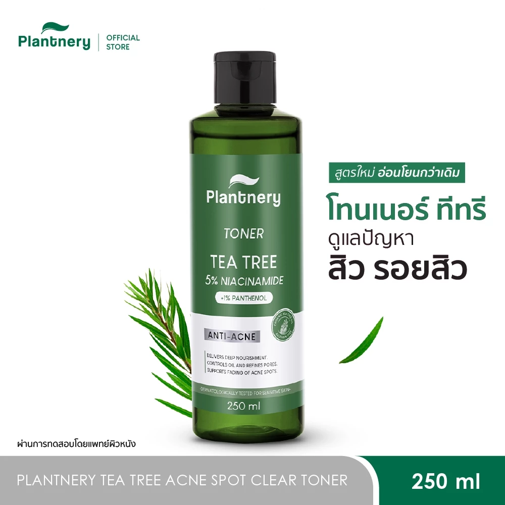 Plantnery Tea Tree Acne Spot Clear Toner 250 ml หรือที่หลายคนเรียกว่า Plantnery Tea Tree First Toner สูตรใหม่ ถูกพัฒนาขึ้นเพื่อดูแลผิวเป็นสิวแบบรอบด้าน ตั้งแต่ช่วงเริ่มมีปัญหาสิว ไปจนถึงช่วงที่สิวยุบแล้วแต่ยังมีรอยหลงเหลืออยู่
