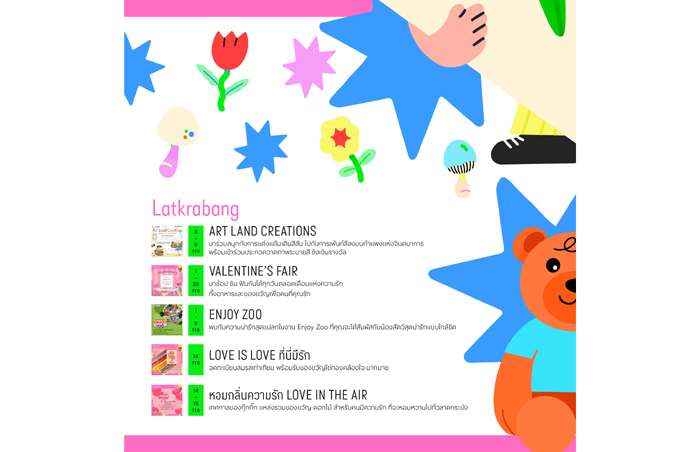 ตลอดเดือนกุมภาพันธ์ แต่ละสาขาขนกิจกรรมมาแบบจัดเต็ม ทั้งช้อปปิ้ง กิน เที่ยว ฟังเพลง ดูหนังกลางแปลง ไปจนถึงเทศกาลดนตรีสุดโรแมนติก และอีเวนต์สายครอบครัวและคู่รักที่เติมรอยยิ้มให้หัวใจได้ทั้งเดือน
