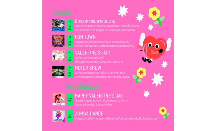 12 ก.พ. 68 – 16 ก.พ. 68 ฉลองความรักในงาน “Pink Valentine”