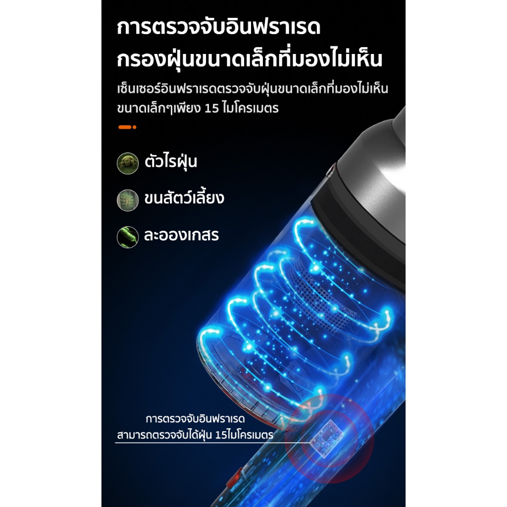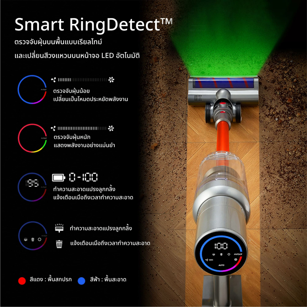 ใช้โหมดแรงดูดอัตโนมัติร่วมกับเซ็นเซอร์ฝุ่น เพื่อสมดุลระหว่างความแรงและการประหยัดแบตเตอรี่