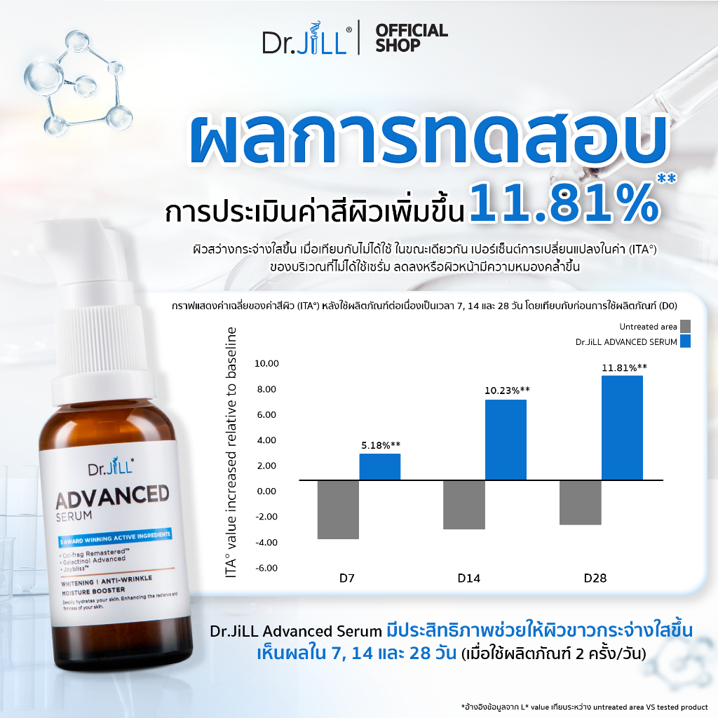 Dr.JiLL Advanced Serum เป็นผลิตภัณฑ์บำรุงผิวหน้าที่จัดอยู่ในกลุ่ม เซรั่มเข้มข้น (Advanced Serum) โดยเฉพาะรุ่นนี้ได้รับการพัฒนาสูตรให้รองรับการแก้ปัญหาผิวหลายด้านพร้อมกันในขวดเดียว ไม่ว่าจะเป็น