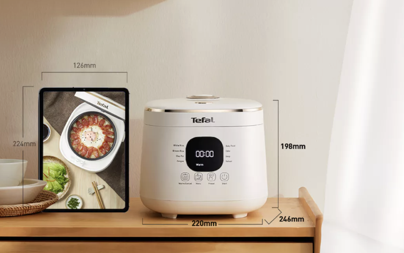 หม้อหุงข้าวไฟฟ้าดีไซน์ทันสมัยจากแบรนด์เครื่องครัวระดับโลก TEFAL ที่ขึ้นชื่อเรื่องความทนทานและคุณภาพของการใช้งานจริง