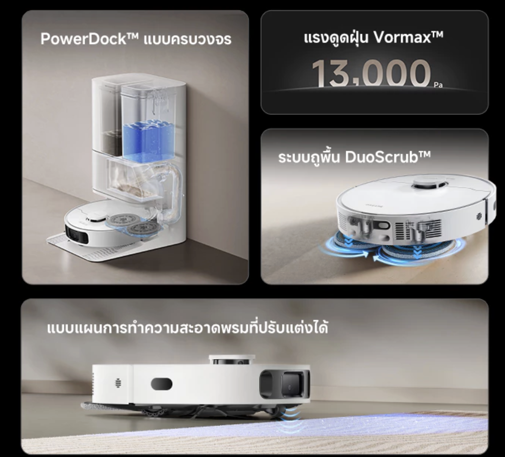 หุ่นยนต์ดูดฝุ่น–ถูพื้นรุ่นนี้คือภาพรวมของการออกแบบที่เข้าใจชีวิตของคนรักบ้านอย่างแท้จริง ทั้งพลังดูด 13,000Pa ที่เก็บงานได้จริง ระบบถูพื้นที่ทำให้พื้นดูเงาและสว่างขึ้น รวมถึงระบบนำทางที่ช่วยให้ทำงานอย่างเป็นระเบียบและปลอดภัยต่อเฟอร์นิเจอร์ ดีไซน์เรียบเนี๊ยบเข้ากับบ้านแทบทุกสไตล์ ทำให้เป็นตัวเลือกที่ตอบโจทย์ทั้งความสะดวกและความงามในมุมบ้าน