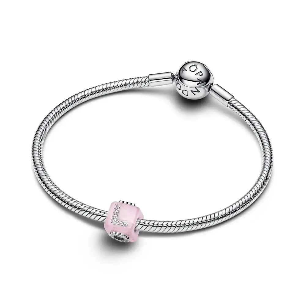 เมื่อพูดถึง Charm ที่ช่วยเพิ่มความหวานให้กับกำไล Pandora หนึ่งในตัวเลือกที่โดดเด่นคือ Pink Murano Glass Love Cube Charm Charm ชิ้นนี้ใช้ แก้ว Murano สีชมพูใสที่มีเอกลักษณ์เฉพาะตัว ให้แสงสะท้อนนุ่มนวล ดูละมุนทุกครั้งที่ข้อมือขยับ