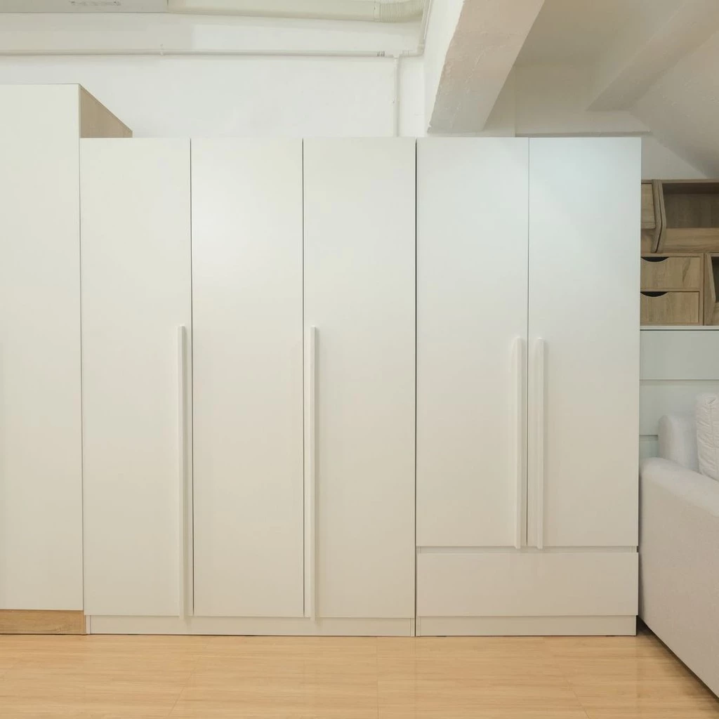 สีขาวแบบ Looms ให้ความรู้สึกสะอาด โปร่ง และเบา แม้ว่าตู้จะมีขนาดค่อนข้างใหญ่ แต่กลับไม่ทำให้ห้องดูอึดอัดเลย