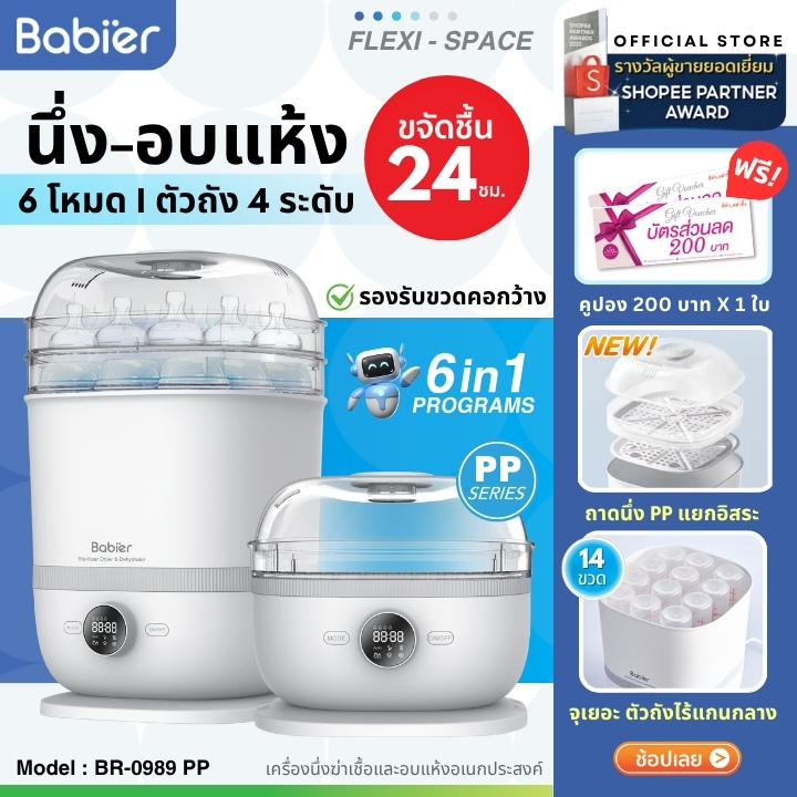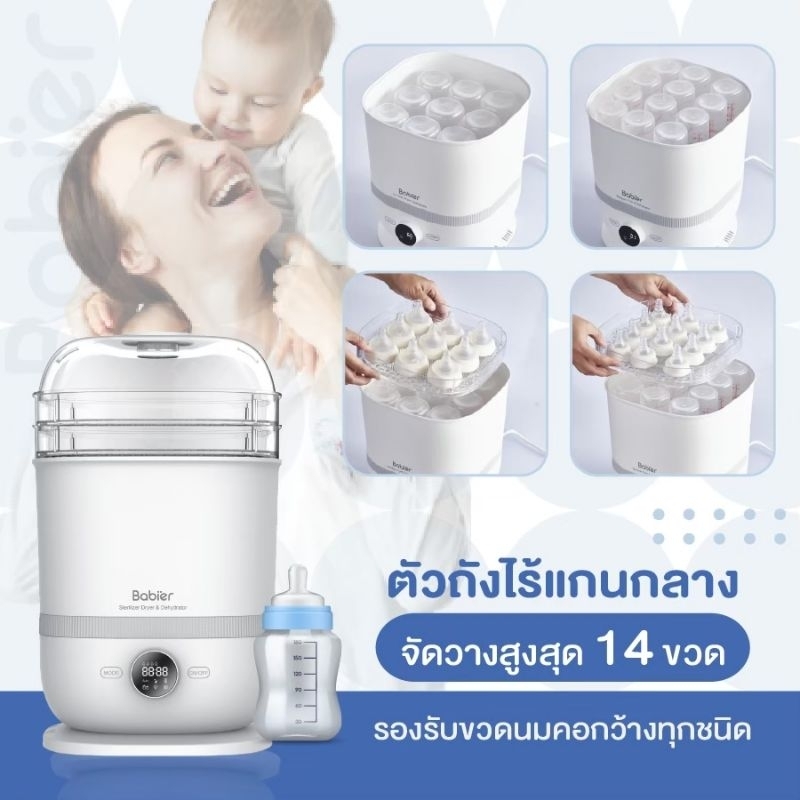 Babier BR-0989 คือเครื่องนึ่งและอบแห้งอเนกประสงค์ 3-in-1 ที่รวมการทำงานสำคัญที่พ่อแม่ต้องใช้ทุกวัน ได้แก่