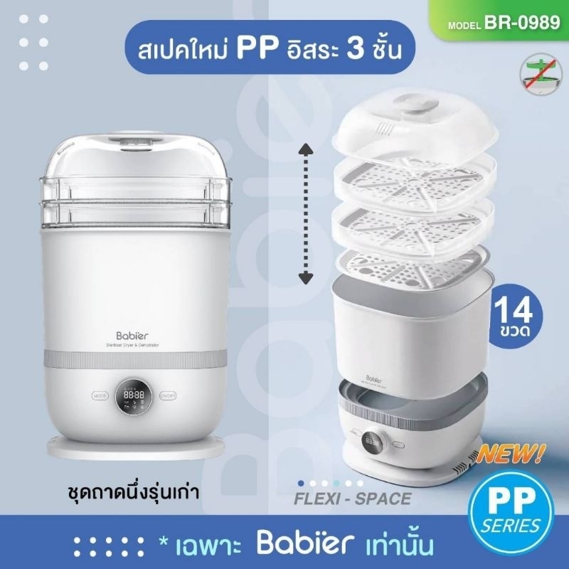 Babier อัพดีไซน์ลิขสิทธิ์ตัวถัง 3 ชั้น รุ่น BR-0989 เป็นเครื่องนึ่งและอบแห้งที่เข้าใจหัวใจพ่อแม่ยุคใหม่อย่างแท้จริง เพราะช่วยทำให้เรื่องฆ่าเชื้อที่เคยยุ่งยากกลายเป็นเรื่องง่าย ประหยัดเวลา และสบายใจในทุกวัน