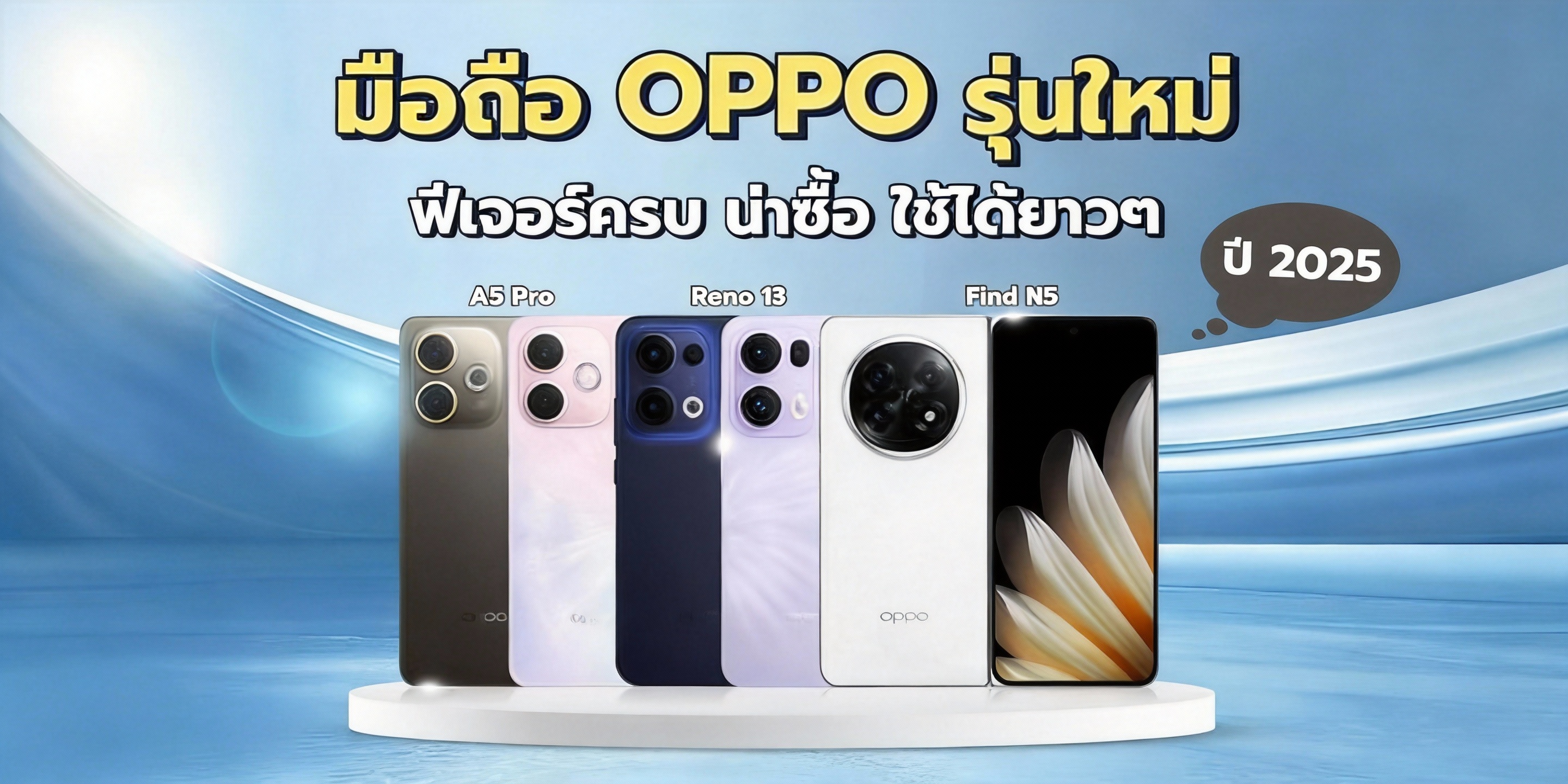 ปี 2025 ถือว่าเป็นอีกปีที่ OPPO ปล่อยมือถือออกมาเพียบ ทั้งสายเรือธง สายจอพับ ไปจนถึงรุ่นกลางราคากำลังดี ใช้เป็นเครื่องหลักก็ได้ จะเอาเป็นเครื่องสำรองหรือซื้อให้คนพิเศษก็ยังคุ้ม