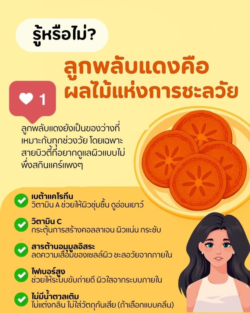 ถ้าวันนี้คุณกำลังมองหา “ขนมหวานที่ให้มากกว่าความอร่อย” ลูกพลับแดงอบแห้งอาจเป็นคำตอบที่ทั้งดีต่อผิว และดีต่อใจของสายเฮลตี้รักการชะลอวัย