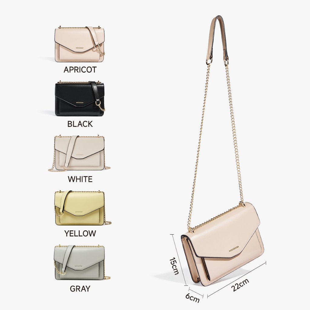 MOSSDOOM Yourice Bag คือกระเป๋าสะพายไหล่สำหรับผู้หญิง ดีไซน์ทรงกล่องจดหมาย (Envelope / Mailbox Shape) ที่ให้ภาพลักษณ์เรียบหรู ดูแพง แต่ไม่แข็งจนเกินไป ตัวกระเป๋าผลิตจากวัสดุหนังพียู (PU Leather) ซึ่งเป็นวัสดุยอดนิยมในแฟชั่นยุคปัจจุบัน เพราะดูคล้ายหนังแท้ ดูแลรักษาง่าย และน้ำหนักเบา