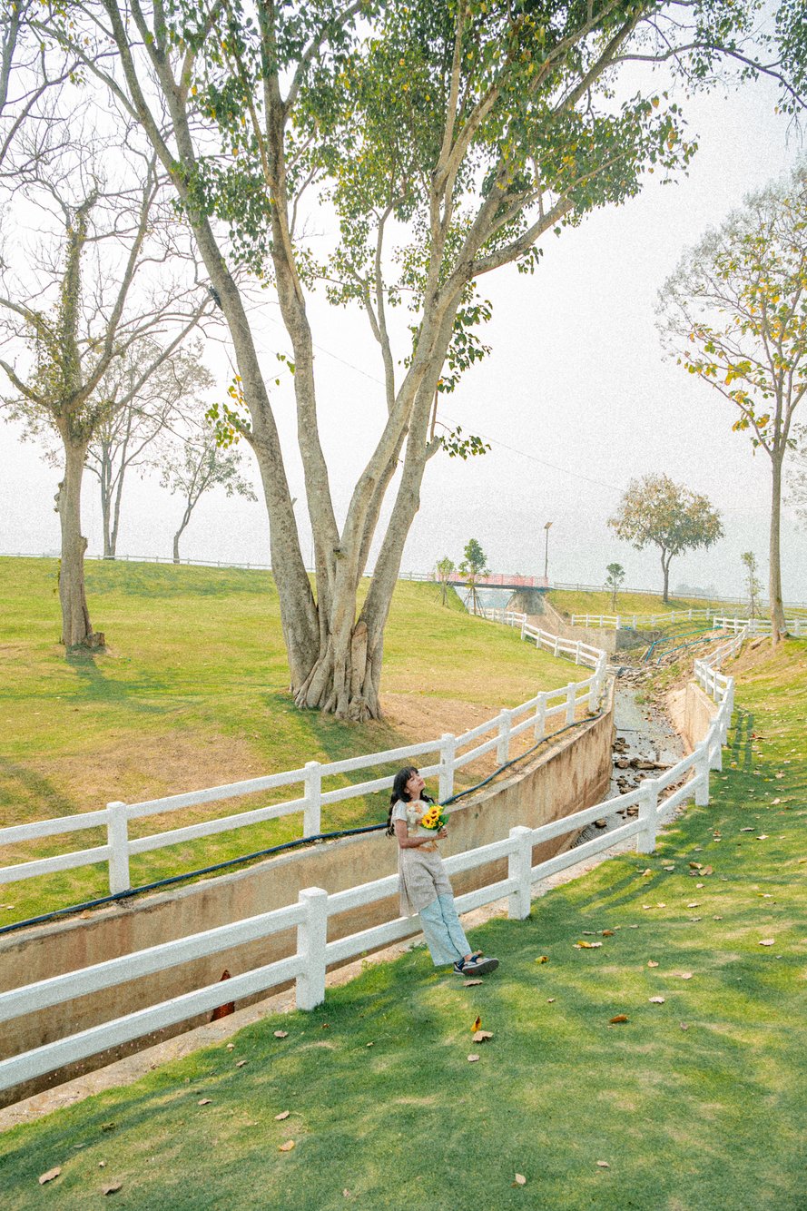 ที่นี่ให้ฟีลคล้ายๆ อ่างแก้ว มช. มีสนามหญ้าสีเขียวกว้างๆ ตัดกับรั้วสีขาว บรรยากาศโล่ง โปร่ง สบายตา เหมาะกับการมานั่งเล่น เดินเล่น หรือปูเสื่อนั่งปิกนิกกับครอบครัวมาก