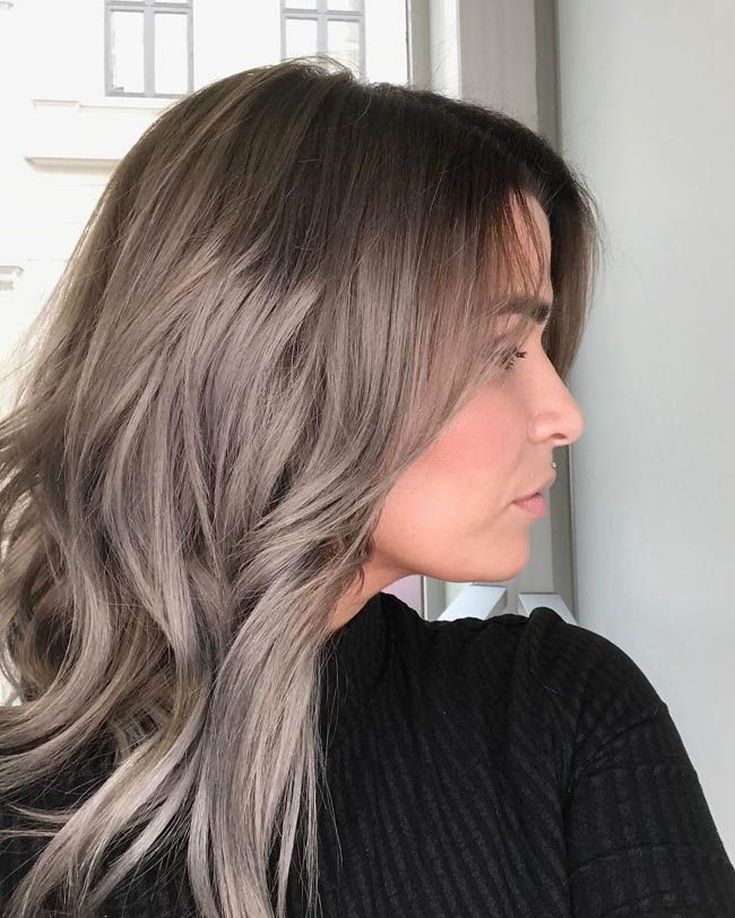 โทนนี้จะให้ฟีลหม่นแบบ “หมอกบาง ๆ” บนลอนผม บางแบรนด์มีโทนคาราเมล–แอช ที่แทรกทั้งโน้ตทองและเทา ทำให้สีดูมีมิติ