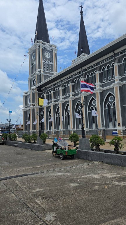 ต่อรถรางชมเมืองแบบชิลๆ ไปยัง อาสนวิหารพระนางมารีอาปฏิสนธินิรมล จันทบุรี วิหารคาทอลิกสุดอลังที่หลายคนยกให้เป็นหนึ่งในโบสถ์คริสต์ที่สวยที่สุดในไทย