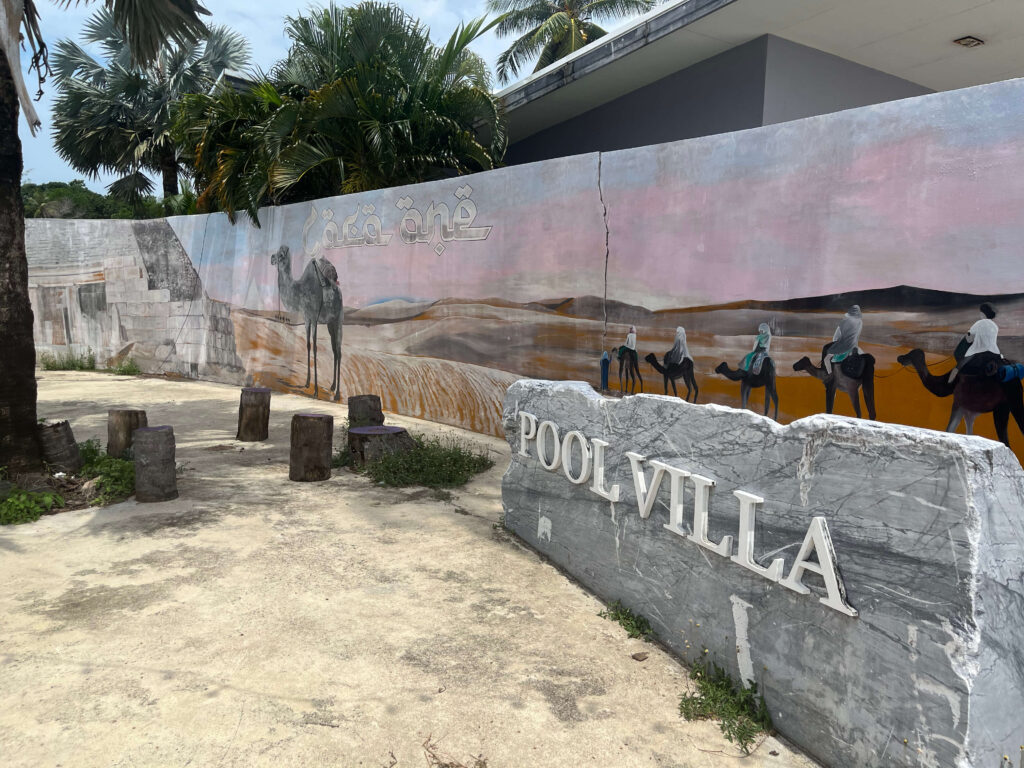 มุมริมทะเล เดินเล่นริมหาดแล้วถ่ายย้อนเข้ามาทางสวนน้ำ ได้ทั้งวิวสระและทะเลในเฟรมเดียว
