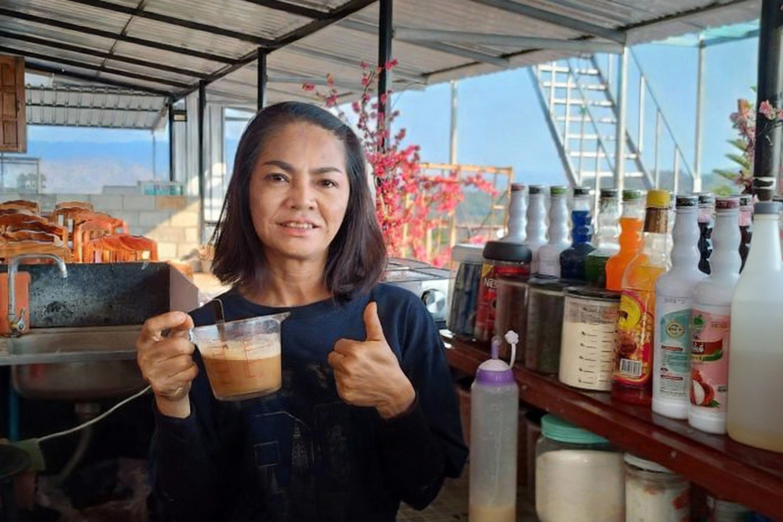เธอเชื่อว่าโลเกชันแบบนี้เหมาะกับการเปิดร้านกาแฟสุดๆ แต่จะขายกาแฟอย่างเดียวคงไม่พอสำหรับคนเดินทางไกล เธอจึงวางแผนเพิ่มอาหารและเมนูรองท้อง สำหรับนักท่องเที่ยวที่แวะพักกลางทาง จะได้มีทั้งของกินและที่นั่งพักสายตาชมวิว