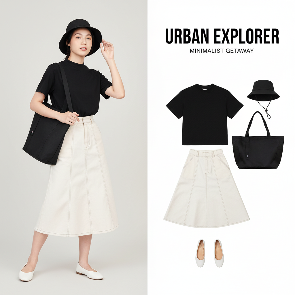 ลุคนี้เหมาะกับสายมินิมอลที่อยากได้สไตล์ สุภาพแต่คล่องตัว จะใส่วันทำงานแบบสบาย ๆ หรือวันหยุดออกไปเดินเล่นในเมืองก็รอดทุกสถานการณ์ เสื้อยืดสีดำคือไอเท็มเบสิคที่ช่วยให้ลุคดูเรียบหรูทันที ส่วนกระโปรงยาวเลยเข่าเสริมอารมณ์สุภาพ แต่ยังคงความเก๋แบบไม่แก่