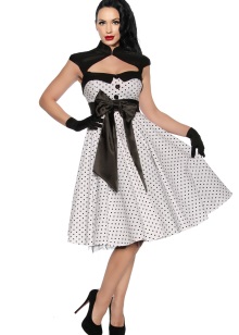 เดรสและกระโปรงทรง “กึ่งดวงอาทิตย์” คือไอเทมหลัก ใต้กระโปรงมักแอบซ้อนด้วยกระโปรงชั้นในอีกหลายชั้นเพื่อให้ชายพองสวยและเน้นเอวกับสัดส่วน ส่วนบนของชุดจะเข้ารูป ทำให้ลุคดูเซ็กซี่แบบวินเทจ
