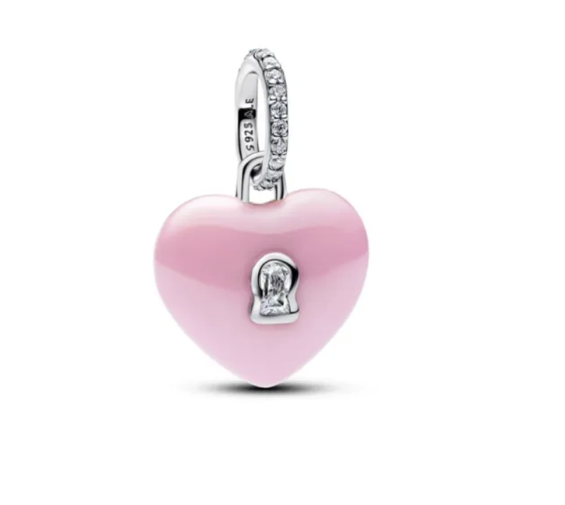 และ Pandora Pink Ceramic Heart Padlock Dangle Charm