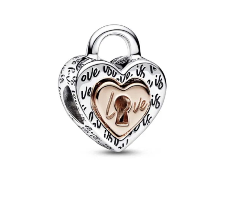 Pandora Rose Heart Padlock Sterling Silver and 14k Rose Gold-Plated Splitable Charm