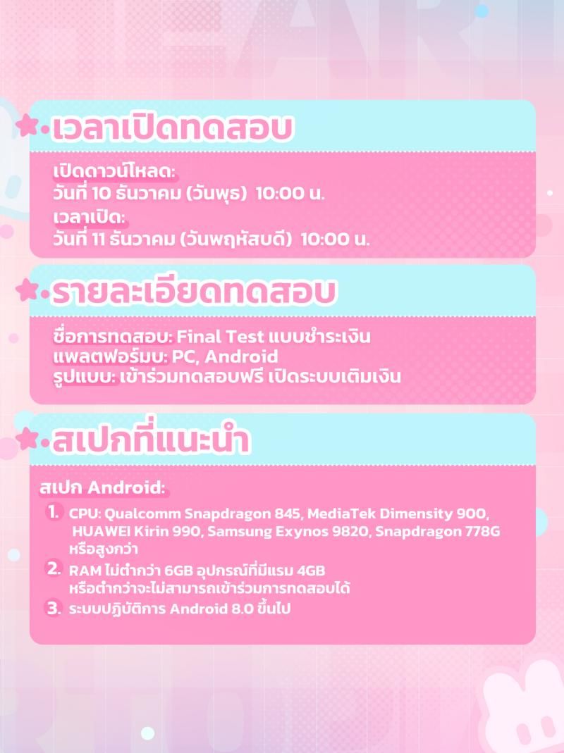 Final Test ครั้งนี้คือโอกาสสุดท้ายก่อนเกมเปิดจริงปีหน้า ใครอยากสัมผัสประสบการณ์แบบเต็มรูปแบบและเก็บของรางวัลลิมิเต็ดห้ามพลาดเด็ดขาด