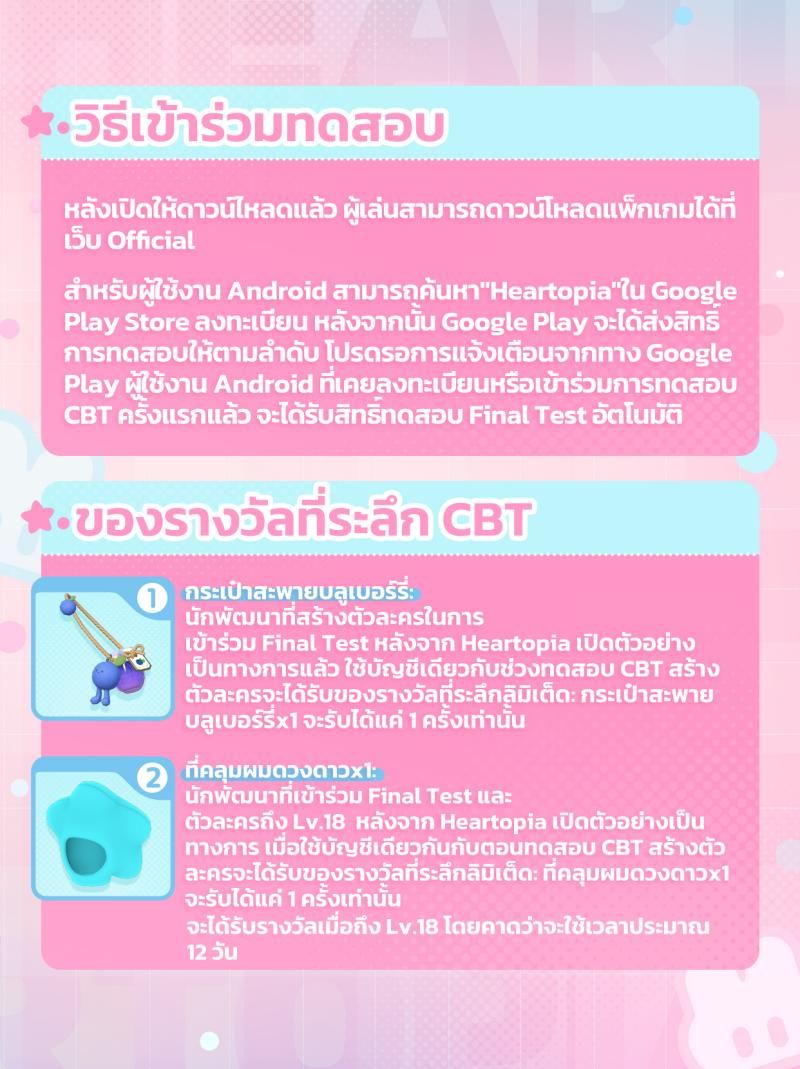และเมื่อเกมเปิดจริง ผู้เล่นที่เข้าร่วมทั้ง CBT และ Final Test จะได้รับของรางวัลพิเศษเหล่านี้ย้ำอีกครั้ง ถือว่าเป็นไอเท็มลิมิเต็ดที่สายสะสมต้องกรี๊ดแน่นอน