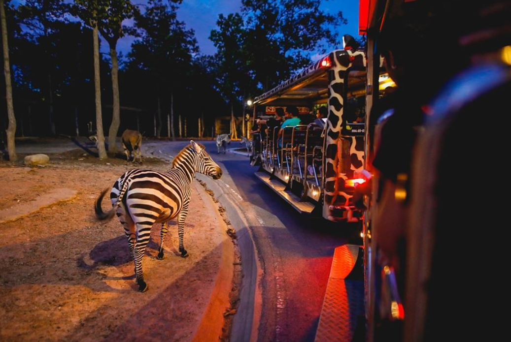 ไฮไลต์หลักคือ รถรางซาฟารีกลางคืน ที่จะพาเข้าไปในโซนจำลองป่าธรรมชาติแบบสมจริง สัตว์หลายชนิดใช้ชีวิตกันอย่างอิสระ ไม่ว่าจะเป็นเสือโคร่ง สิงโต ไฮยีน่า ยีราฟ ม้าลาย หรือกวาง ซึ่งบางทีเข้ามาใกล้จนรู้สึกเหมือนเอื้อมมือไปลูบหัวได้ เรียกว่าตื่นเต้นกว่านั่งดูในกรงหลายเท่า