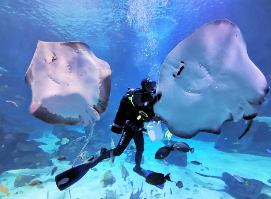 ไฮไลต์ที่พลาดไม่ได้คือ อุโมงค์ใต้น้ำแบบพาโนรามา ที่ให้เดินท่ามกลางปลาฉลาม ปลากระเบน เต่าทะเล และสัตว์หายากที่ว่ายวนอยู่รอบตัว ให้ฟีลเหมือนดำน้ำโดยไม่ต้องเปียกสักหยด