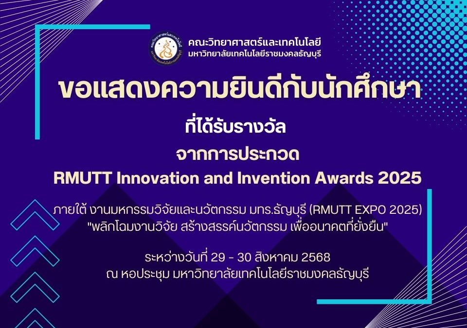 ในกลุ่มผลงานระดับนักศึกษา คณะวิทยาศาสตร์ มทร.ธัญบุรี โชว์ของทั้งสายความปลอดภัย สายเกษตร และสายอาหารฟังก์ชัน จนคว้ารางวัลสำคัญหลายรายการ