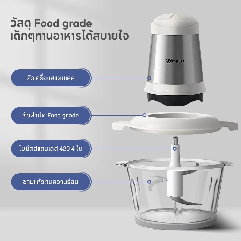 ตัวเครื่องถูกออกแบบให้ใช้งานไม่ซับซ้อน แค่ใส่วัตถุดิบ กดปุ่ม ก็สามารถบดเนื้อ บดผัก หรือผสมอาหารได้ทันที เหมาะกับคนที่ทำอาหารเองบ่อย แต่ไม่อยากเสียเวลาขั้นตอนเตรียมวัตถุดิบ