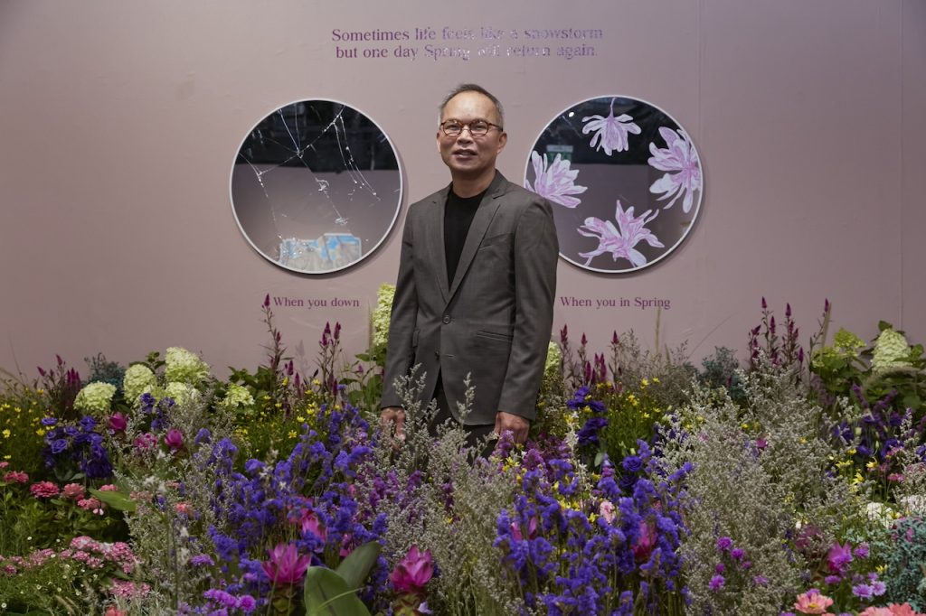 เขายังจำได้ทั้งสัมผัสของลมอ่อน ๆ ที่พัดผ่านใบหน้า และกลิ่นหอมบาง ๆ ของดอกไม้ จึงอยากเก็บทุกความประทับใจนั้นไว้บนผืนผ้าใบ เพื่อส่งต่อให้คนดูได้ใช้เป็นที่ “ฮีลใจ” เช่นเดียวกับที่ธรรมชาติเคยช่วยเขาไว้ในวันที่รู้สึกหลงทาง
