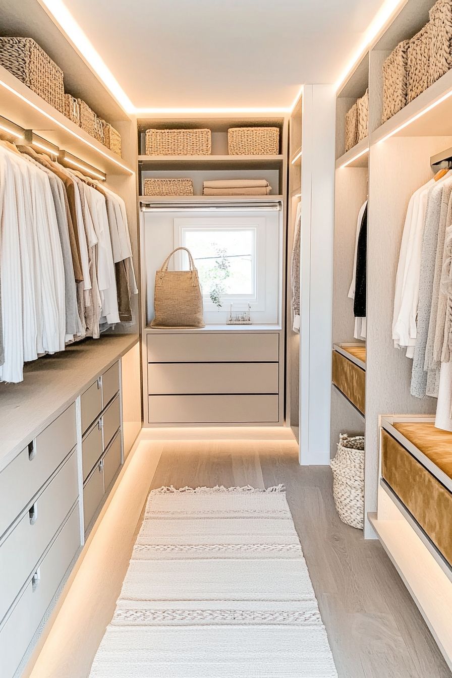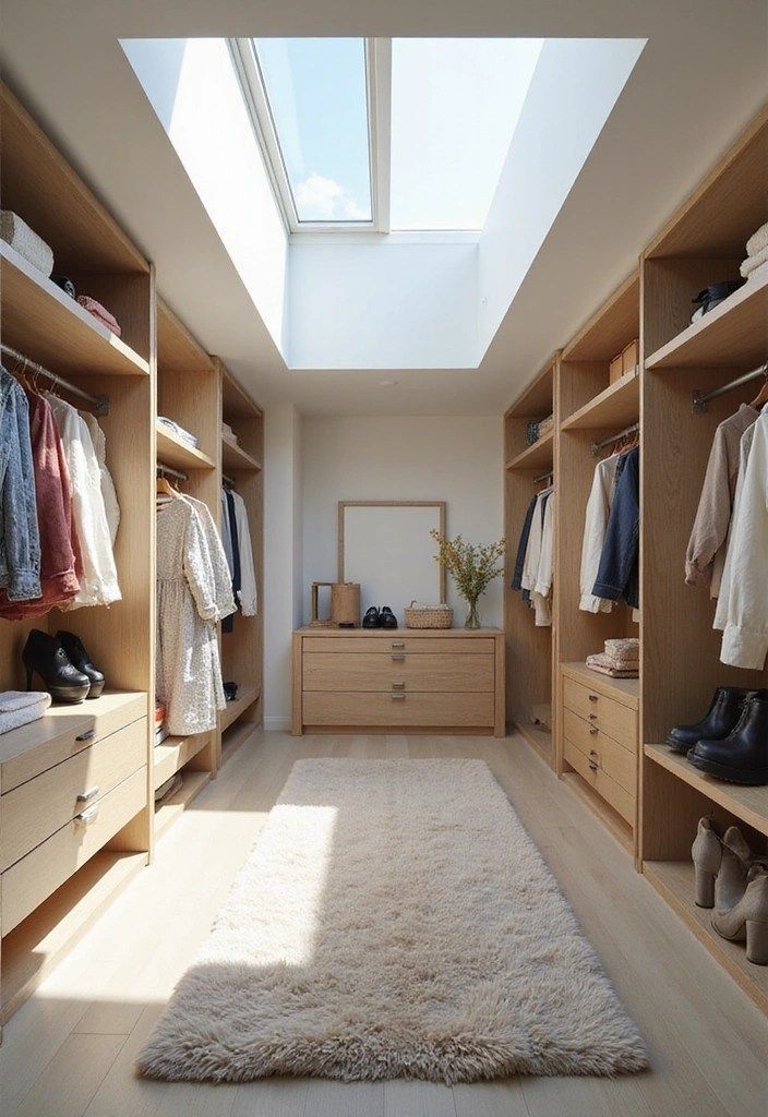 ในข้อมูล Walk-in Closet มีการแนะนำให้ใช้ไฟส่องสว่างและกระจกบานใหญ่ เพื่อช่วยให้มองเห็นสิ่งของชัดเจน และทำให้ห้องดูกว้างขึ้น