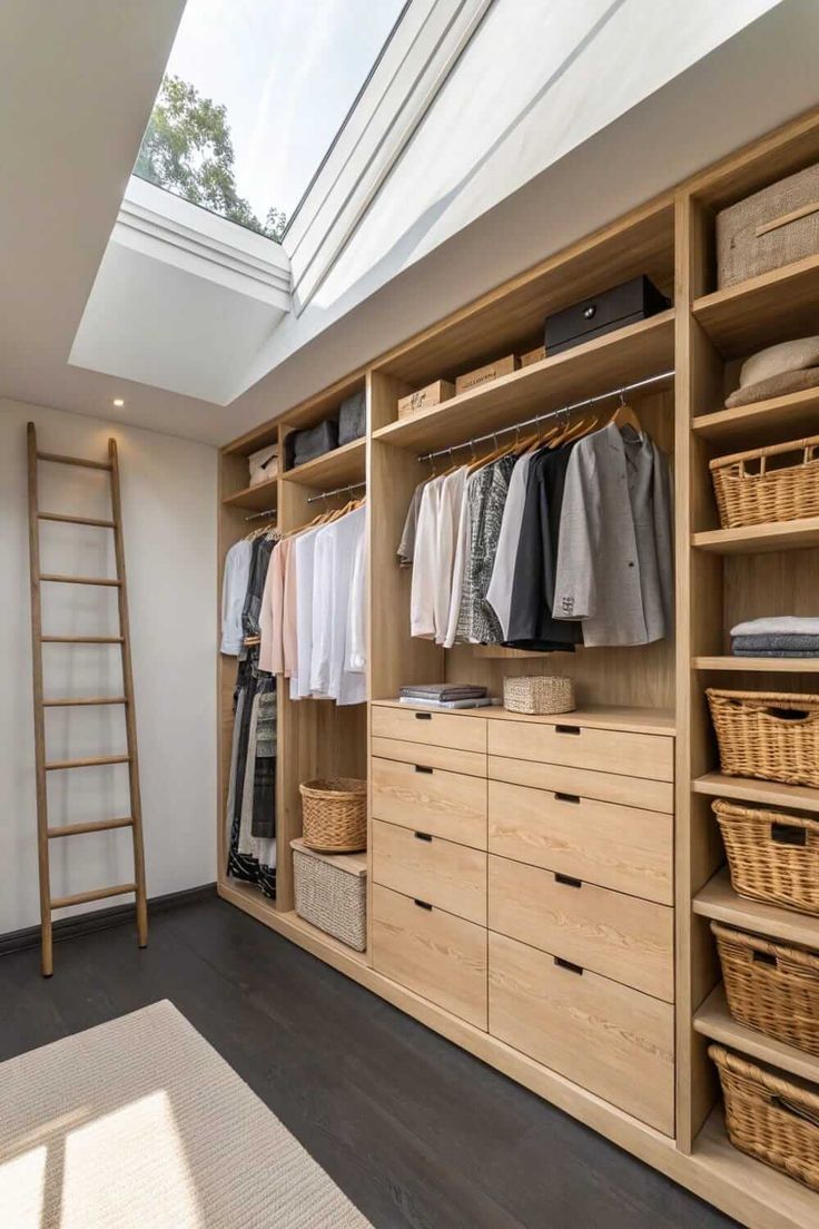 จากแนวคิดการใช้พื้นที่บ้านให้คุ้มค่า สามารถออกแบบราวแขวนสูง–ต่ำ ตามประเภทเสื้อผ้า เพื่อใช้พื้นที่แนวตั้งเต็มที่ใช้ชั้นลิ้นชักสำหรับของชิ้นเล็ก